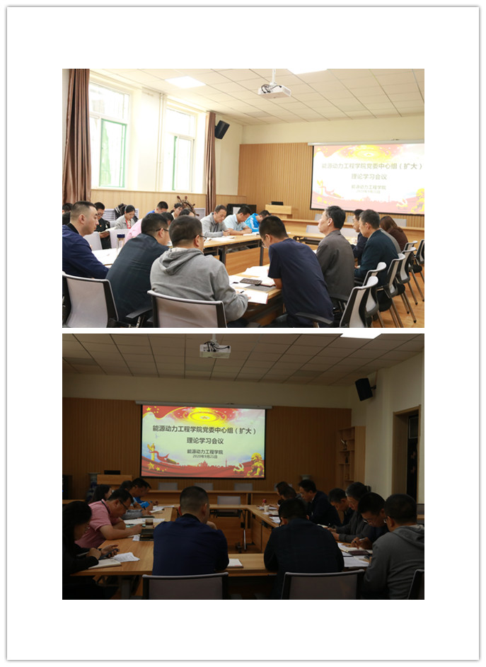 2020年9月21日下午3:30,能源动力工程学院党委召开中心组(扩大)理论学习会议,会议由院党委书记李运芝同志主持,学院党委委员、支部书记、支部委员、科级以上干部、辅导员参加会议。