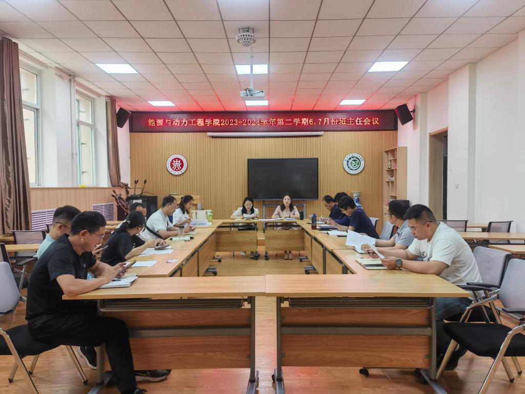 2024年6月4日上午,能源与动力工程学院在诚学楼115会议室召开6、7月份班主任工作会议,重点围绕2024年6、7月团学工作要点,安排部署工作。学院党委副书记任雁、全体班主任和辅导员参会,会议由院团委书记李晓彧主持。
