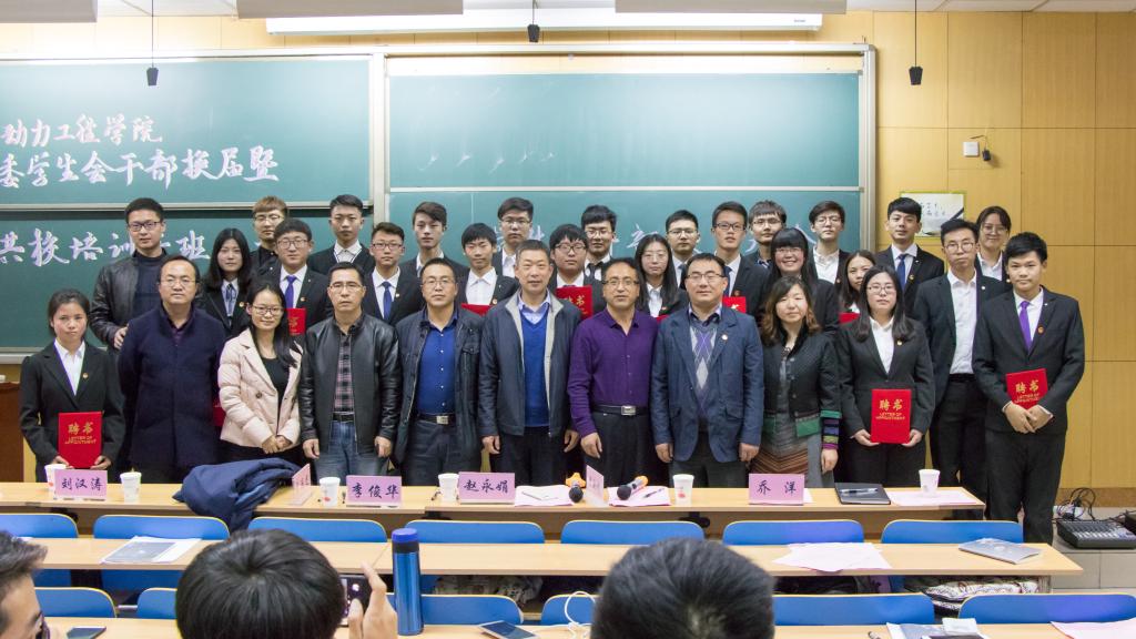 11月3日晚,能源动力工程学院团委学生会干部换届暨青共校开班仪式于11508教室圆满举行。校团委书记李俊华老师、院党委书记李运芝老师、院长刘汉涛老师、院党委副书记兼副院长赵永娟老师、团委书记李晓彧老师、各科室负责老师、上届学生干部、团委学生会副部级以上干部及17级班团干部参加此次会议。