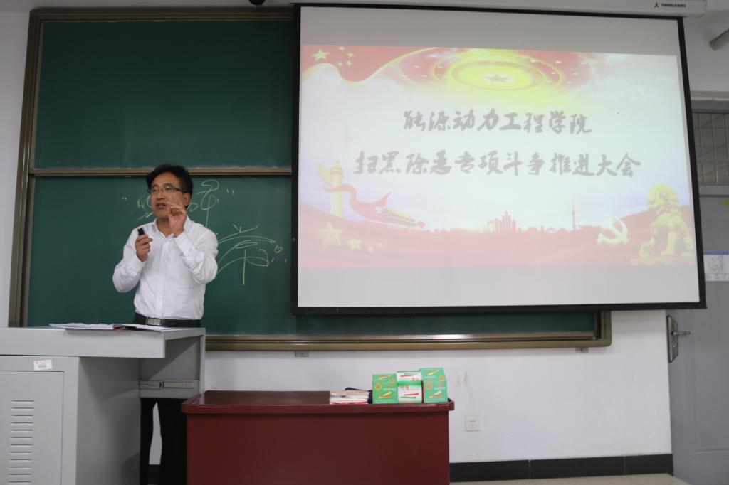 为贯彻落实学校有关文件和会议精神,切实保护全体师生的合法权益,确保校园和谐平安,切实维护学院工作的稳定进行。9月21日下午15:00,能源动力工程学院在15108Z召开扫黑除恶专线斗争推进会,全体院领导、全院教职工出席了本次大会。