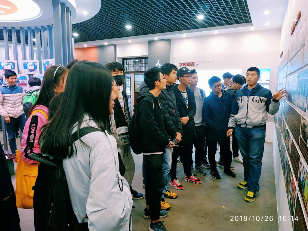 26日下午团支书张逸青带领全班同学到校史馆参观,解说员详细地为大家介绍了学校历史、现状以及百年百强目标。随后又邀请到学校崔俊杰老师,崔老师向大家介绍了学校走过的历史路程,又对学生学习态度进行了更深一步的引导,同学们认真倾听受益匪浅。
