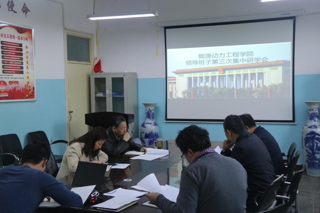 “不忘初心、牢记使命”主题教育工作方案》总体要求,能源动力工程学院于2019年11月15日开展领导班子第三次集中学习研讨会,本次研讨会由能源动力工程学院党委书记李运芝主持,院长刘汉涛以及全体院领导班子成员参加了本次会议。
