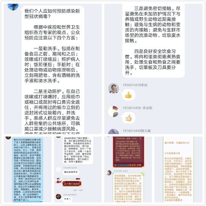 课程过后,同学们在线上展开了积极讨论。一位大四准毕业生说:“管住自己、帮助别人,武汉人民是可亲的;一方有难、八方支援,中国人民是可亲的;危难之际,伸出援手,世界人民是可亲的。我为自己身在中国而骄傲,为自己是一名中国人而骄傲,感谢伟大的祖国伟大的党。”