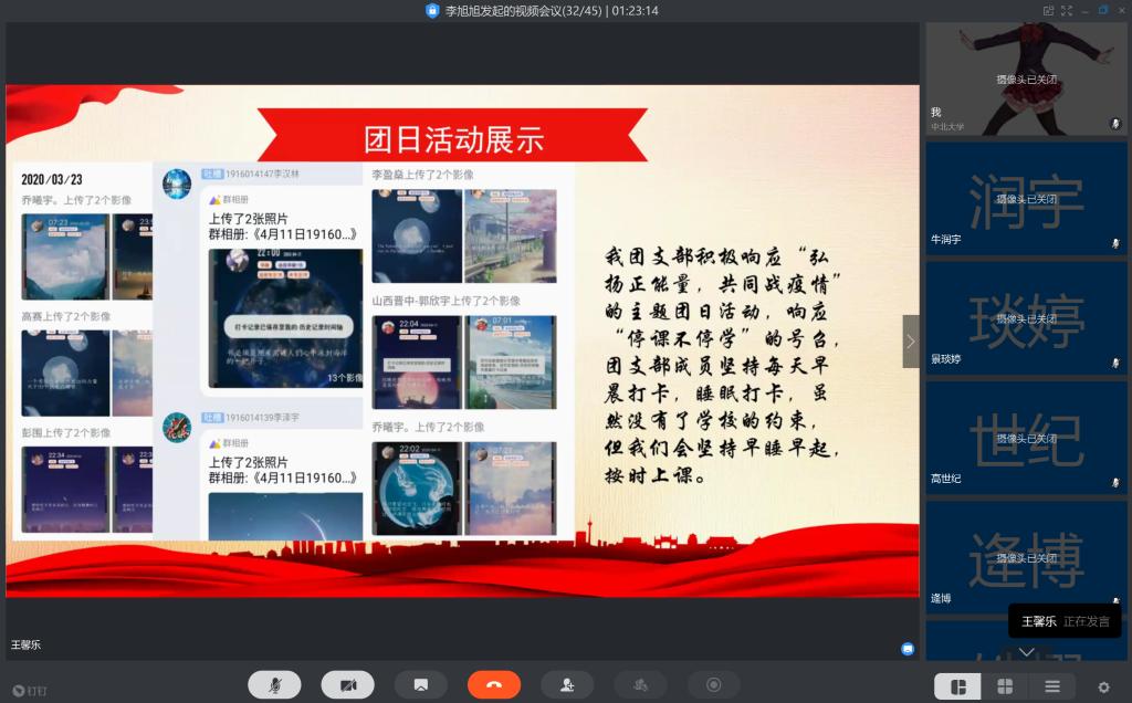 疫情拉长了彼此的距离,但炙热的心却紧紧相连。本次线上答辩会不仅是对各团支部、团干、团员青年的工作考核,也创造了工作交流和学习的平台,更彰显出了能动学子勤奋务实,工作认真的态度,希望能动学子在今后的学习和工作中更加努力进取,各团支部创建支部特色,彰显青年活力。