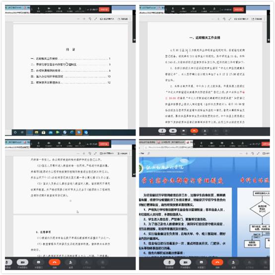首先,李书记通过回顾疫情初期到目前我国疫情防控取得重大进展,以及在这场没有硝烟的战争中涌现出的先进事迹,告诫全体同学要感谢党中央的正确决策部署和坚强领导。“一方有难,八方支援”的社会主义制度的优越性得到了充分体现。接着,任书记从毕业生返校学院疫情防控的具体安排及措施对同学们进行“防疫抗疫”相关工作安排。提醒同学们履行宿舍暂行管理制度、坚持每日体温打卡,帮助同学们增强自我防护意识,积极面对疫情。