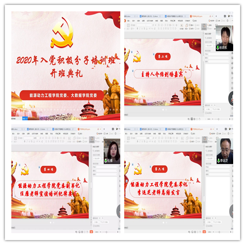 为保持基层党组织的生机和活力,吸收更多有觉悟的青年积极分子入党,能源动力工程学院党委与大数据学院党委于2020年5月16日至17日通过腾讯会议在线联合举办了2020年春季入党积极分子培训班。能源动力工程学院党委书记李运芝、党委副书记任雁,大数据学院党委副书记杨晓东一同出席了开班典礼。