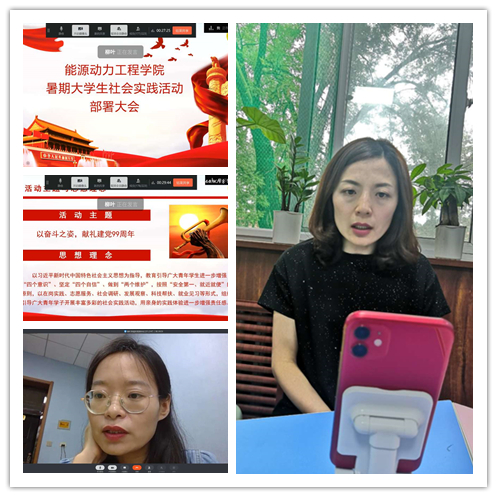 关于开展2020年暑期大学生社会实践活动的通知》要求和学院具体实际,为深入学习贯彻习近平总书记视察山西重要讲话重要指示,认真落实省委“四为四高两同步”总体思路和要求, 7月17日下午5:00,能源动力工程学院通过钉钉会议召开了暑期大学生社会实践活动部署大会,院党委副书记兼副院长任雁、院团委书记李晓彧以及参加2020年暑期大学生社会实践的全体同学参与了此次会议。