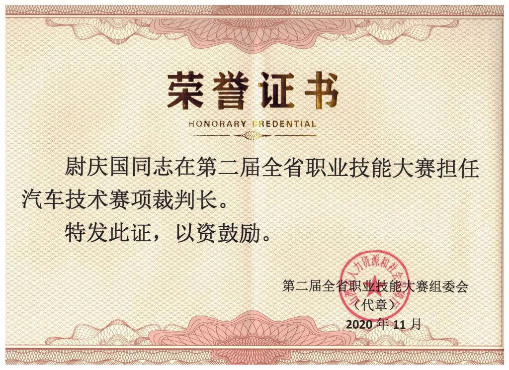 教师尉庆国担任本届汽车技术赛项裁判长。