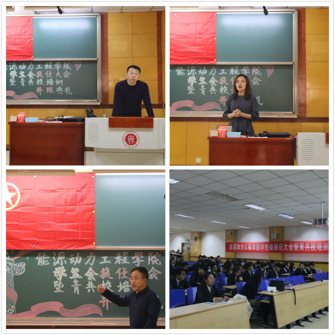 11月15日上午9:00,能源动力工程学院于09202教室举行学生会换任大会暨青共校开班典礼仪式。出席典礼的嘉宾有校团委书记顾宁老师,院党委书记李运芝老师,院党委副书记兼副院长任雁老师,院团委书记李晓彧老师,辅导员周甜甜老师。学生会副部及以上工作人员,2019、2020级所有班团干部参与培训。