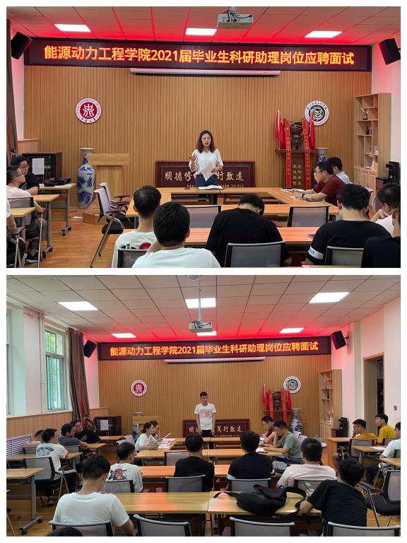 科研助理聘用管理办法》(试行)文件精神的指导下,能源动力工程学院各科研项目(课题)组(科研团队)按照要求积极开发科研助理岗位,经过前期岗位设置、申请、发布、学生申请等阶段,学院于2021年6月17日下午在诚学楼115报告厅组织2021届毕业生科研助理岗位应聘面试工作。学院党委副书记任雁、各科研项目(课题)组(科研团队)联系人、辅导员周甜甜组成考核小组,对2021届全体科研助理岗位应聘学生进行考核。