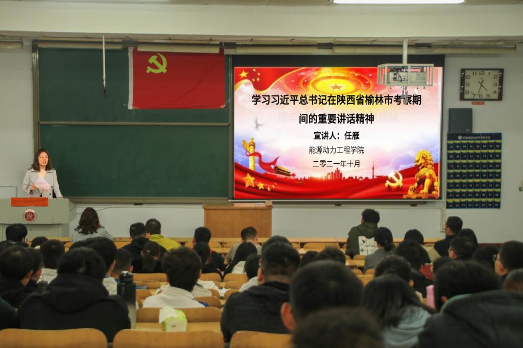 2021年10月12日下午,能源动力工程学院在勤学楼08101H教室举行党史学习教育理论学习会。本次会议由院党委副书记任雁同志领学,学院全体教职工和各班学生代表约180余人参加了会议。