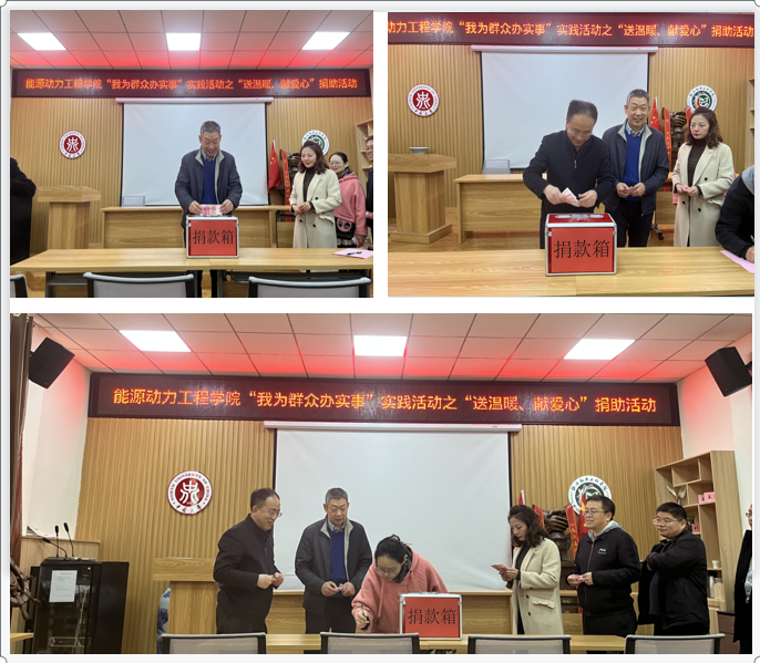 自接到通知以来,能源动力工程学院党委高度重视,广泛发动,于11月18日上午在院楼115会议室开展了“送温暖、献爱心”现场捐助活动。在院党委书记李运芝、院长刘汉涛的带领下,老师们慷慨解囊,纷纷将饱含爱心的善款投入捐款箱中,为扶贫济困贡献了自己一份微薄之力。不能参加现场捐款的老师们,也通过线上捐款的形式奉献出自己的爱心。