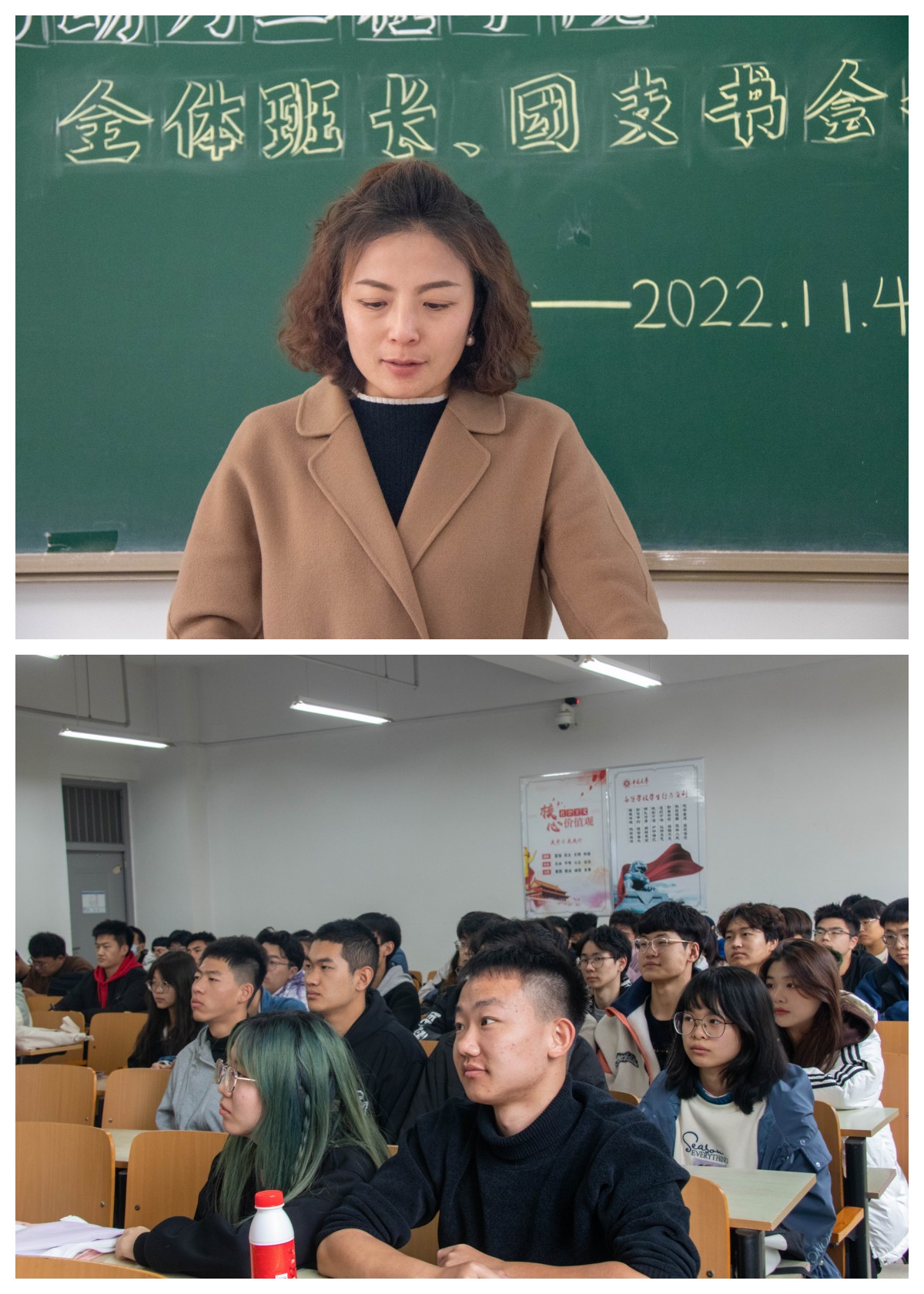 11月4日中午,学院于15304H召开全院班长、团支书会议,会议由学生科长叶增民老师主持,全院班长团支书共70余人参加会议。会上叶增民老师要求各班级组建督查小组进行班级自查,构建班干部包宿舍的督查机制,做好每日体温打卡、晨午体温上报、核酸检测等工作,严格落实请销假制度,严禁擅自离校或私自返校,坚决杜绝把安全隐患带入校园。院党委副书记任雁老师结合《关于开展学生疫情防控工作督查的通知》要求强调,要发挥群防群控力量,构建人人负责、人人尽责的学生管控体系,通过班级自查、学院普查、学校抽查的三级联动机制,筑牢疫情防控底线。