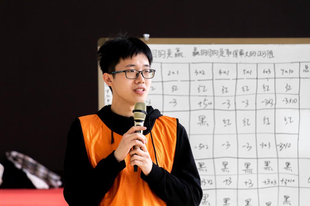 上午8点半,学生骨干们首先进行“大山说”热身活动,通过简单的热身,迅速活跃了素质拓展的氛围。随后大山老师通过“报数字”的方式将同学们随机分为四组,各小组仅用10分钟的时间便确定了自己队伍的队长、队名、队歌以及口号并集体展示,团队的凝聚力得到初步展现,队伍之间的比拼也随即正式开始。第一个项目“黄金60秒”,四个小组先后进行4轮60秒图片观察,通过30张图片上的信息推出1-30号数字。游戏中,各组成员团结一心,分工明确,团队竞争异常激烈,团队意识迅速增强。接下来是“红黑博弈”,通过这个项目,让同学们更加了解人性的特点,以便今后更好的开展学生工作。