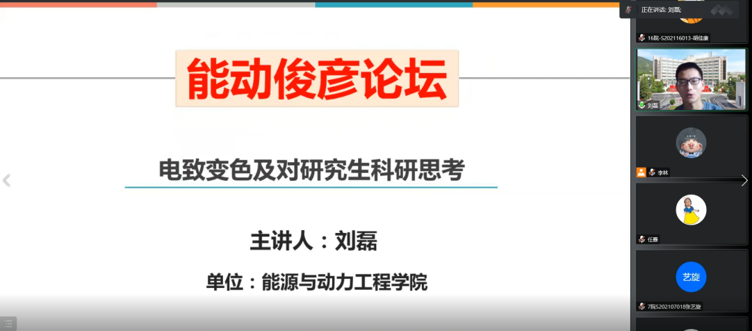 于2022年12月3日下午15:00在线上举办了以“电致变色及对研究生科研思考”为主题的俊彦讲坛,来自各学院的300余名研究生在线聆听了此次讲座。本次讲坛邀请到渡边传媒