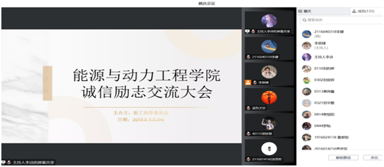 于2022年12月6日下午16:00于腾讯会议举办了2022年诚信励志大会。学院党委副书记兼副院长任雁、学生科李清岩,全体家庭经济困难学生参加了此次会议。