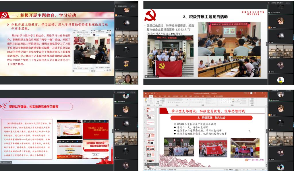 党委在线上召开2022年度党支部书记抓党建述职评议考核会。学院党委委员、各党支部书记和支委、学院组织员共20余人参会,会议由学院党委书记顾宁同志主持。