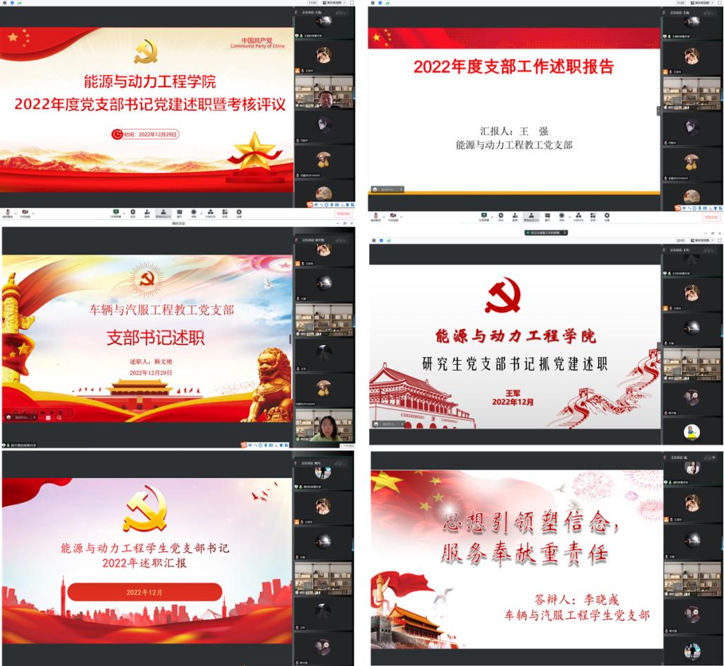 会上,能源与动力工程教工党支部书记王强、车辆与汽服工程教工党支部书记韩文艳、研究生党支部书记王军、能源与动力工程学生党支部书记叶增民、车辆与汽服工程学生党支部书记李晓彧,分别围绕本支部学习贯彻党的二十大精神、推动党建工作与业务工作融合发展、党员作用发挥、全面推进“五化”建设、党员发展、党建工作取得成果、存在问题及整改措施等方面,通过图文并茂的PPT进行述职。院领导对各自联系的党支部工作进行逐一点评,既充分肯定了这一年来各党支部党建工作取得的成绩,又指出了各党支部在凝练支部品牌特色、发挥战斗堡垒作用等方面存在的不足,达到了总结成绩、查摆问题、抓好整改、共同进步的目的。与会人员对各支部工作完成情况进行评议打分,形成了2022年度学院各党支部综合考核评议结果。