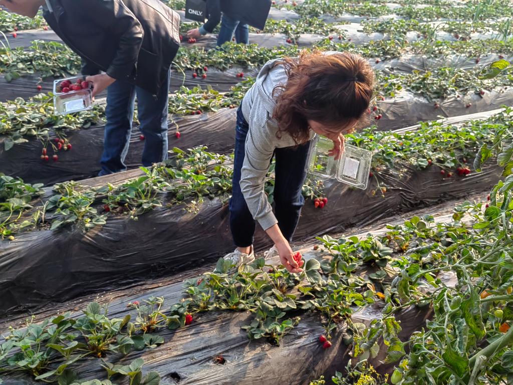 大家在学院门口集合,领取采摘门票后前往目的地“七色果草莓园”,一路欢声笑语,畅聊人生。走进草莓大棚,一阵阵清香扑鼻而来,老师们三个一伙五个一群地开始采摘起来。绿油油的枝叶下簇拥着颗颗鲜红的草莓,让人垂涎欲滴。大家手拿盒子,穿梭在草莓田间尽情畅游在这份“莓好”之中,体验品尝、采摘的乐趣。活动结束后,每个人都满载而归,脸上洋溢着满足的笑容。