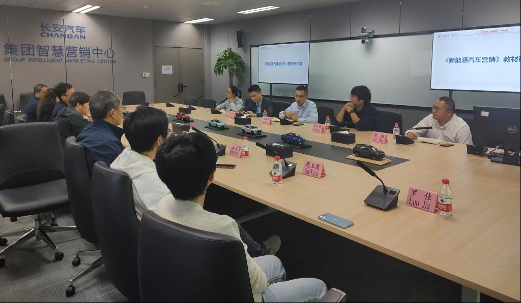 为加快推进党的二十大精神进教材、进课堂、进头脑,全面提升教材的适用性、科学性、先进性;为推进新能源汽车产业学院高质量建设、了解企业需求、探讨校企研人才培养模式、推进“引企研入教”、开发校企研合作课程。提高毕业生就业质量。3月31日下午,车辆工程系教师尉庆国、王吉昌、高玉霞、李晓专、罗佳与山西省高质量转型发展研究院新能源汽车推广中心主任赵秀兰一行8人赴重庆长安汽车集团智慧营销中心召开《新能源汽车营销》教材研讨会。