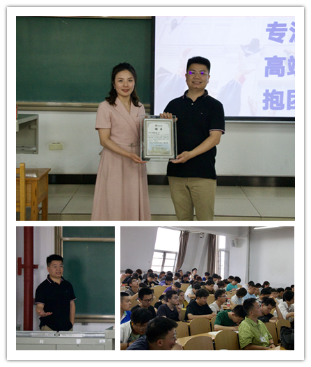 杨晋斌校友以《汽车行业从业经验分享》为主题,从汽车行业、汽车企业、职业规划三大板块进行了分享,通过对2022年中国市场汽车总销量和细分车类销量的分析,为同学们介绍了中国新能源汽车的现状和发展趋势,明确了新能源汽车将是传统车辆相关专业和新兴能源动力类专业的未来从业方向。在互动环节,他与同学们就职业规划、工作经验等方面进行了深入交流。任雁副书记为杨晋斌校友颁发了“校友导师”聘书和纪念徽章。